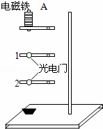 物理小组的同学用如图所示的实验器材测定重力加速度,实验器材有:底座、带有标尺的竖直杆、光电门1和2组成的光电计时器(其中光电门1更靠近小球释放点),小型电磁铁一个(用于吸住或释放小钢珠)、网兜.实验时可用两光电门测量小球从光电门1运动至光电门2的时间t,并从竖直杆上读出两光电门间的距离h.