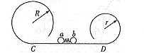 如图所示,半径分别为R和r(R>r)的甲乙两光滑圆轨道安置在同一竖直平面内.两轨道之间由一光滑水平轨道CD相连,在水平轨道CD上有一轻弹簧被a、b两个小球夹住,但不拴接.同时释放两小球,