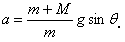 如图所示,一块质量为M的木板沿倾角为θ的斜面无摩擦地下滑,现要使木板保持静止,则质量为m的人向下奔跑的加速度应为多少?