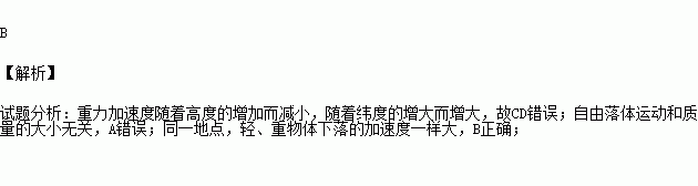 关于自由落体运动的加速度,下列说法中正确的是( )