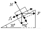 如图所示,质量为m的物体,放在一固定斜面上,当斜面倾角为300时恰能沿斜面匀速下滑。保持斜面倾角为300,对物体施加一水平向右的恒力F,使物体沿斜面匀速向上滑行,已知重力加速度为g,试求: