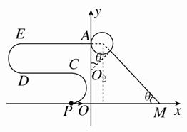 C的微粒从x轴上xP=-0.8 m处的P点以速度v=0.12 m/s沿x轴正方向射入,经时间t后,从y轴上的A点进入第一象限并正对磁场圆的圆心。穿过磁场后击中x轴上的M点。(g取10 m/s2、π=3,最终结果保留2位有效数字)求: