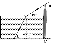 如图,一玻璃水槽,水深h=1.2m,身高H=1.8m的人紧靠水槽站立.太阳光以与水平方向成θ=37°角射在水面上,测得人在水中底部的影长L=1.7m.(c=、sin37°=0.6,cos37°=0.8)求: