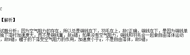 C.因为空气阻力的存在,所以总是铜钱在下、羽毛在上