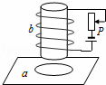 如图,圆环形导体线圈a平放在水平桌面上,在a的正上方固定一竖直螺线管b,二者轴线重合,螺线管与电源和滑动变阻器连接成如图所示的电路.若将滑动变阻器的滑片P向下滑动,下列表述正确的是( )