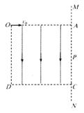 如图,纸面内直线MN左侧边长为L的正方形区域OACD中.有方向平行于AC的匀强电场.O处的粒子源沿垂直于AC方向发射速度为v0的正电粒子,粒子质量为m、电荷量为q。粒子恰好从AC的中点P经过。不计粒子重力。
