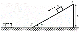 如图所示,抗震救灾运输机在某场地卸放物资时,通过倾角θ=30°的固定的光滑斜轨道面进行.有一件质量为m=2.0kg的小包装盒,由静止开始从斜轨道的顶端A滑至底端B,然后又在水平地面上滑行一段距离停下,若A点距离水平地面的高度h=5.0m,重力加速度g取10m/s2,求: