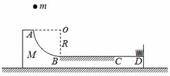 如图所示,竖直平面内轨道ABCD的质量M=0.4kg,放在光滑水平面上,其中AB段是半径R=0.4m的光滑1/4圆弧,在B点与水平轨道BD相切,水平轨道的BC段粗糙,动摩擦因数μ=0.4,长L=3.5m,C点右侧轨道光滑,轨道的右端连一轻弹簧。现有一质量m=0.1kg的小物体(可视为质点)在距A点高为H=3.6m处由静止自由落下,恰沿A点滑入圆弧轨道(g=10m/s2)。求: