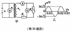 如下图甲所示,理想变压器原、副线圈的匝数比为4:1,电压表和电流表均为理想交流电表,原线圈接如图乙所示的正弦交流电,图中R为NTC型热敏电阻(阻值随温度的升高而减小),R1为定值电阻,下列说法正确的是( )