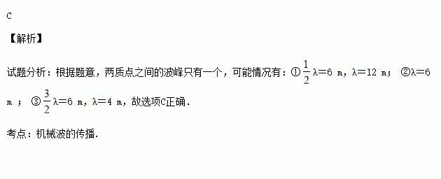 一列简谐横波沿直线传播,某时刻该列波上正好经过平衡位置的两质点相距6 m,且这两质点之间的波峰只有一个,则该简谐波可能的波长为( )