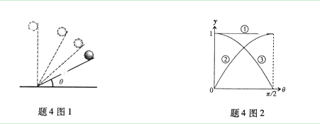 如图所示为伽利略研究自由落体运动实验的示意图,让小球由倾角为θ的光滑斜面滑下,然后在不同的θ角条件下进行多次实验,最后推理出自由落体运动是一种匀加速直线运动。分析该实验可知,小球对斜面的压力、小球运动的加速度和重力加速度与各自最大值的比值y随θ变化的图象分别对应如图2中的
