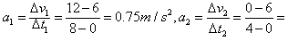 由v-t图可得:-1.5m/s2,负号表示加速度方向与初速度方向相反