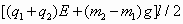 如图,在竖直向下,场强为E的匀强电场中,长为l的绝缘轻杆可绕固定轴O在竖直面内无摩擦转动,两个小球A、B固定于杆的两端,A、B的质量分别为m1和m2(m1<m2),A带负电,电量为q1,B带正电,电量为q2.杆从静止开始由水平位置转到竖直位置,在此过程中电场力做功为_________,在竖直位置处两球的总动能为_________.