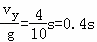 将小球以3m/s的速度水平抛出,它落地速度为5m/s,小球在空中运动的时间为(g=10m/s2)()