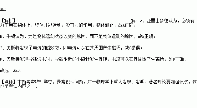 A.亚里士多德认为,必须有力作用在物体上,物体才能运动;没有力的作用,物体或静止