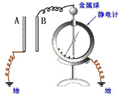 如图所示, 让平行板电容器带电后,极板B与一灵敏的静电计相接,极板A接地。静电计的指针偏转一定的角度,若不改变A、B两板的带电量,而将A板向B板稍微靠近,那么( ) ![]()