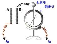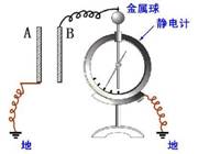 如图所示, 让平行板电容器带电后,极板B与一灵敏的静电计相接,极板A接地。静电计的指针偏转一定的角度,若不改变A、B两板的带电量,而将A板向B板稍微靠近,那么