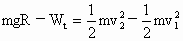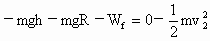 小球从高处落至槽口时,由于只有重力做功,因此机械能守恒;由槽口运动至槽底端有摩擦力做功,因此机械能不守恒.由于对称性,半圆槽右半部分摩擦力做的功与左半部分摩擦力做的功大小相等,小球在槽右口的机械能因摩擦力做功而转化为热量. (1) 小球落到槽右口过程中,机械能守恒,重力势能转变成小球在槽右口的动能.解得 由对称性知小球从槽底到槽左端过程中,摩擦力做的功也为