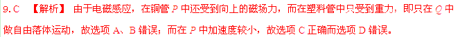 如图所示,上下开口、内壁光滑的铜管P和塑料管Q竖直放置,小磁块先后在两管中从相同高度处由静止释放,并落至底部,则小磁块[