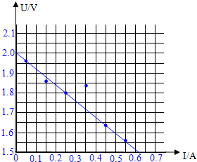 ③由图示图象可知,I=0.2A时,U=1.849V,则电源输出功率P=UI=1.849×0.2≈0.37W;