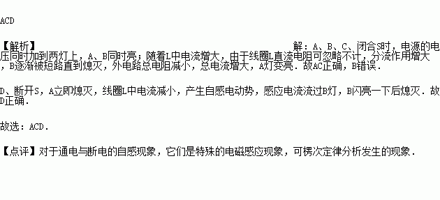 D.断开S时,A立即熄灭,B灯重新亮随后逐渐熄灭
