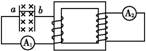 如图所示,两条足够长的平行金属导轨竖直放置,其间有与导轨平面垂直的匀强磁场,金属棒ab沿导轨下滑,下滑过程中与导轨接触良好.金属棒、导轨、电流表A1和理想变压器原线圈构成闭合回路.金属棒ab在沿导轨下滑的过程中,电流表A1一直有示数,而电流表A2在某时刻之后示数变成了零,以下说法中正确的是( )