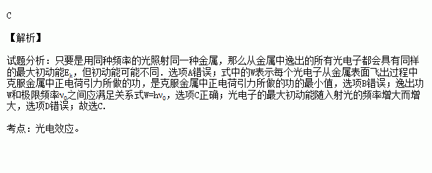 A.只要是用同种频率的光照射同一种金属,那么从金属中逸出的所有光电子都会具有同样的初动能Ek