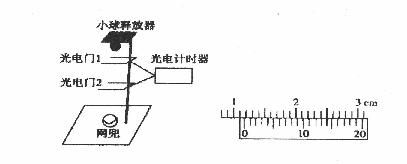 某物理小组的同学用如图所示的实验器材测定重力加速度,实验器材有:底座、带有标尺的竖直杆、光电门1和2组成的光电计时器(其中光电门1更靠近小球释放点)、小球释放器(可使小球无初速度释放)、网兜。实验时可用两光电门测量小球从光电门1运动至光电门2所用的时间t,并从竖直杆上读出两光电门间的距离h。