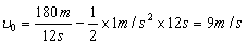 一辆汽车以1m/s2的加速度行驶了12s,驶过了180m.汽车开始的速度是多少?