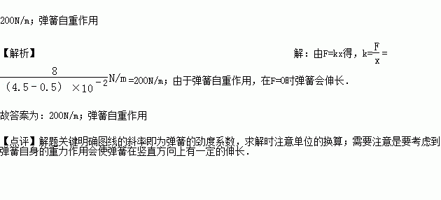 在研究弹簧形变与外力关系的实验中,将弹簧水平放置而测出其自然长度,然后竖直悬挂而让其自然下垂,在其下端竖直向下施加外力F,实验过程是在弹簧的弹性限度内进行的,用记录的外力F与弹簧的形变量x作出F﹣x图线如左,由图可知弹簧的劲度系数k= ,图线不过坐标原点的原因是 .