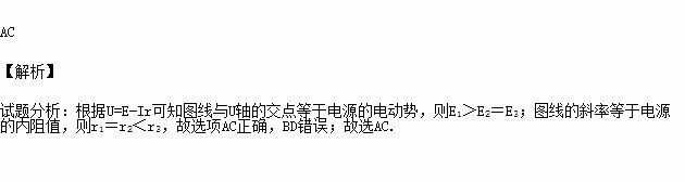将三个不同的电源的U-I图线画在同一坐标中,如图所示,其中1和2平行,它们的电动势分别为E1、E2、E3,它们的内阻分别为r1、r2、r3,则它们之间的关系是( )