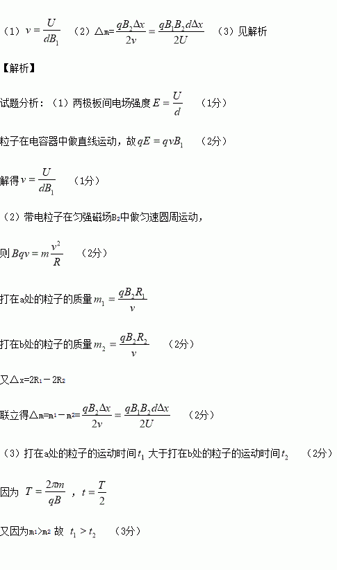 (2)打在a、b两点的粒子的质量之差