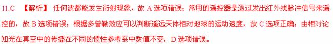 C.根据多普勒效应可以判断遥远天体相对于地球的运动速度