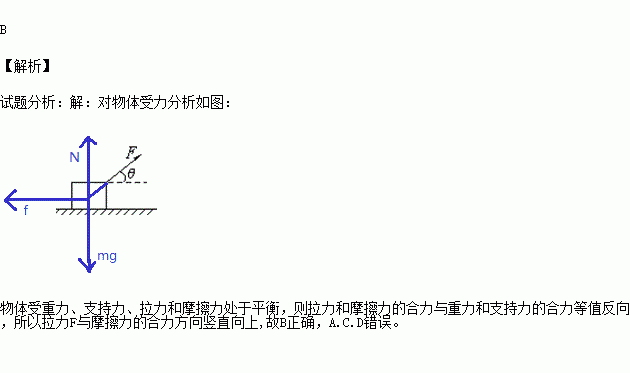 如图所示,处于水平地面上的物体,在斜向上的拉力F的作用下做匀速直线运动,则物体所受拉力与地面摩擦力f的合力方向一定是( )