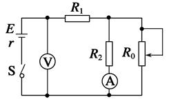 如图所示电路,电源内阻不可忽略。开关S闭合后,在变阻器R0的滑动端向下滑动的过程中( )