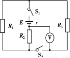 如图所示电路中,电阻R1=R2=R3=10 Ω,电源内阻r=5 Ω,电压表可视为理想电表.当开关S1和S2均闭合时,电压表的示数为10 V.求: