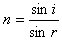 由几何关系及折射定律公式,得i'=30°,r'=60°