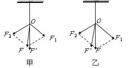 (3) 如图所示,是甲、乙两位同学在做本实验时得到的结果,其中F是用作图法得到的合力,F’是通过实验测得的合力,则哪个实验结果是符合实验事实的? (填“甲”或“乙”)