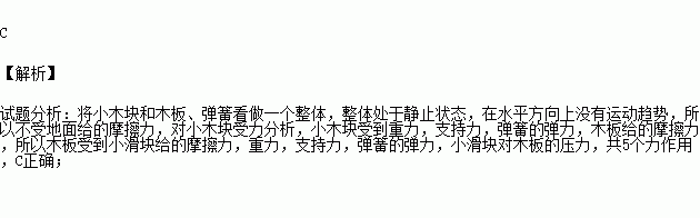 如图所示,水平地面上的L形木板M上放着小木块m,M与m间有一处于压缩状态的弹簧,整个装置处于静止状态。长木板受力的个数为( )