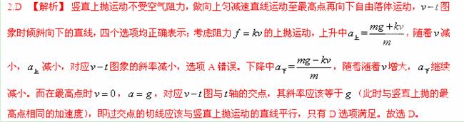 以不同初速度将两个物体同时竖直向上抛出并开始计时,一个物体所受空气阻力可忽略,另一物体所受空气阻力大小与物体速率成正比,下列用虚线和实线描述两物体运动的