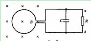 面积S = 0.2m2、n = 100匝的圆形线圈,处在如图所示的磁场内,磁感应强度B随时间t变化的规律是B = 0.02t,R = 3Ω,C = 30μF,线圈电阻r = 1Ω,其余导线电阻不计,求: