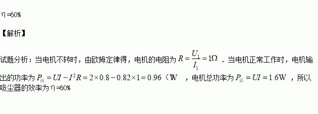 微型吸尘器的直流电动机的电阻一定,当加在电机上的电压为0.3V时,电机不转,但流过电机的电流为0.3A;当所加电压为2V时,电机正常工作,工作电流为0.8A,求电动机正常工作时效率是多少?