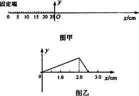 将一根长为130 cm的均匀弦线,沿水平的x轴放置,拉紧并使两端固定,如图甲所示.现对离固定端向右25 cm处(取该处为原点)的弦上施加一个沿垂直于弦线方向(即y轴方向)的扰动,其位移随时间的变化规律如图乙所示.该扰动将沿弦线传播而形成波(孤立的脉冲波).已知该波在弦线中的传播速度为2 cm/s,选项图中表示自O点沿弦线向右传播的波在t=2.5 s时的波形图正确的是