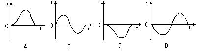 (2)若将条形磁铁的S极迅速插人感应线圈时得到上题中②所示图线,现有一磁棒自远处匀速沿一圆形线圈的轴线运动,并穿过线圈向远处而去,如右图所示,则下列四图中,较正确反映线圈中电流i与时间t关系的是( )![]()