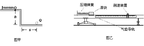 在研究“弹簧的弹性势能与弹簧长度改变量的关系”实验中,弹簧长度的改变量可利用刻度尺直接测量得到,而弹性势能的大小只能通过物理原理来间接测量。现有两组同学分别按图甲(让钢球向左压缩弹簧一段距离后由静止释放,使钢球沿水平方向射出桌面)和图乙(让滑块向左压缩弹簧一段距离后由静止释放,使滑块在气垫导轨上向右运动,通过相应的测量仪器可以测出滑块脱离弹簧后的速度)两组不同的测量方案进行测量.请写出图甲方案中弹性势能与小球质量m及图中各量之间的关系EP= ;图乙方案中除了从仪器上得到滑块脱离弹簧后的速度外还要直接测量的量是 ;两种设计方案的共同点都是将弹性势能的测量转化为对另一种形式的能 的测量。