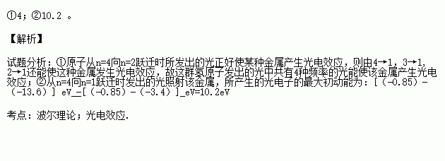 ②从n=4向n=1跃迁时发出的光照射该金属,所产生的光电子的最大初动能为 eV。