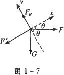 | 对物体进行受力分析,如图1-7所示,由于物体“锁定”在斜面上静止不动,故受力平衡.设Fm′为最大静摩擦力,则有