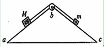 如图所示,楔形木块abc固定在水平面上,粗糙斜面ab和光滑斜面bc与水平面的夹角相同,顶角b处安装一定滑轮。质量分别为M、m(M>m)的滑块,通过不可伸长的轻绳跨过定滑轮连接,轻绳与斜面平行。两滑块由静止释放后,沿斜面做匀加速运动。若不计滑轮的质量和摩擦,在两滑块沿斜面运动的过程中 ( )