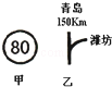 为了使公路交通安全有序,路旁立了许多交通标志,如图所示,甲图是限速标志,表示允许行驶的最大速度是80km/h;乙图是路线指示标志,表示此处到青岛还有150km.上述两个数据表达的物理意义是( )