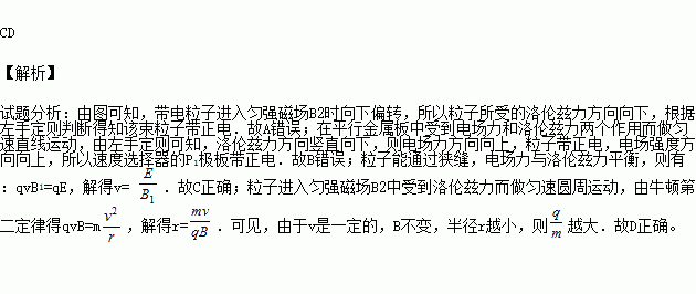 D.粒子打在胶片上的位置越靠近狭缝S0,粒子的比荷越大